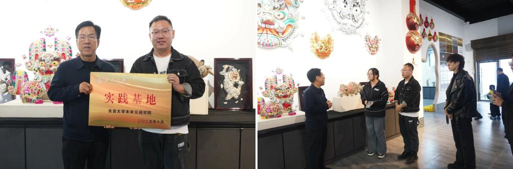 与胡新明进行“实践基地”授牌仪式,促进了中华优秀传统文化融入高校心育和美育实践的双向联动。